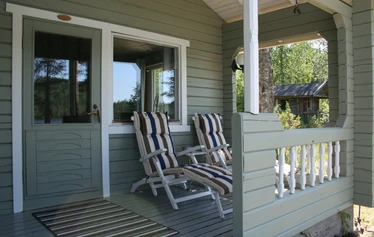 Villa Riihiranta offers all amenities indoors. A private sauna & wash-room and bedroom with a lake view, a front porch for relaxing and cooling off after a sauna. Riihiranta also has a refrigerator, water kettle and microwave. There is a small log pavilion on the shore with a small grouping for meals. The shore also has a campfire spot.